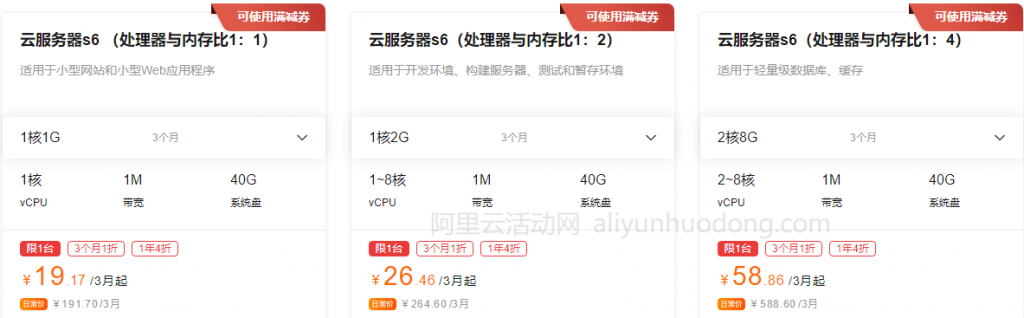 - 1核1G:1M-5M带宽 40G系统盘,19.17元3个月起、306.72元1年起;