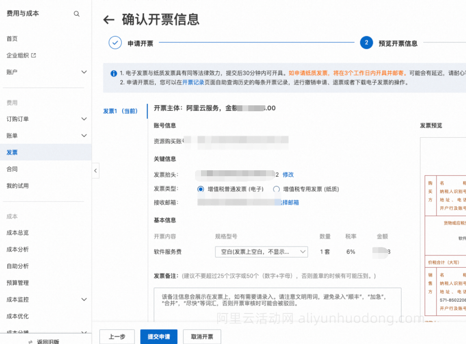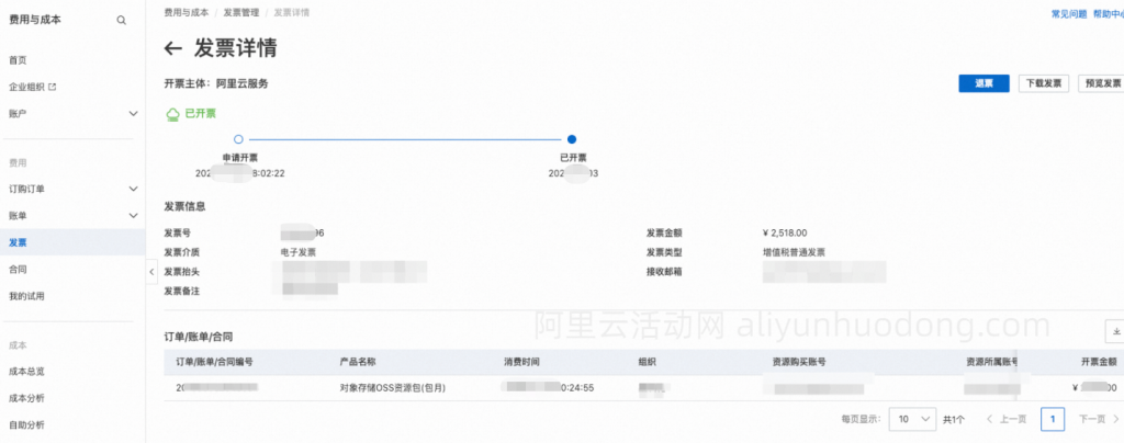 - 自2020年3月24日起,阿里云服务&硬件的“增值税普通发票”仅支持开具电子发票,不再提供纸质发票选项。