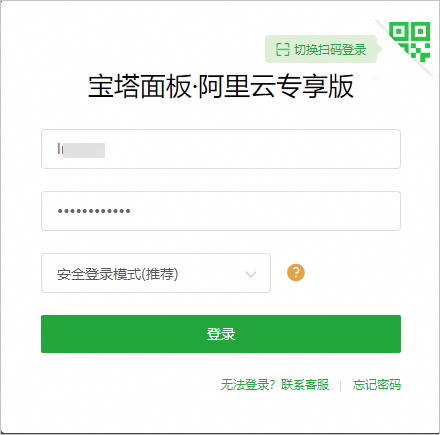 4.输入登录用户名以及密码信息,单击登录,根据界面提示进入宝塔面板。