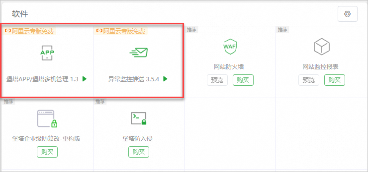 搭建宝塔Linux面板阿里云专享版 9.2.0后,阿里云用户会享有以下特权: