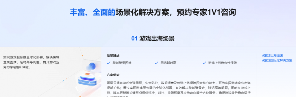 企业可通过阿里云出海专家服务预约系统提交需求,选择游戏、跨境电商等场景,技术专家将提供1V1架构设计与迁移指导。