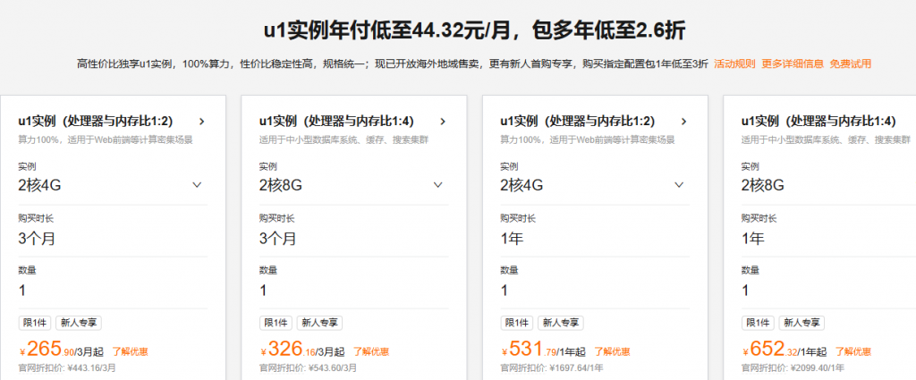 二、u1实例年付低至44.32元/月,包多年低至2.6折