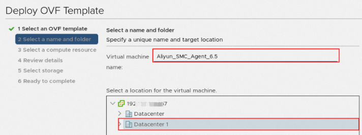 在vCenter环境中导入VMware无代理连接器OVF模板,并通过该模板部署VMware无代理连接器。以vCenter 6.7为例,操作步骤如下: