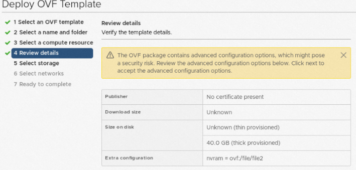 选择OVF模板后,单击NEXT。