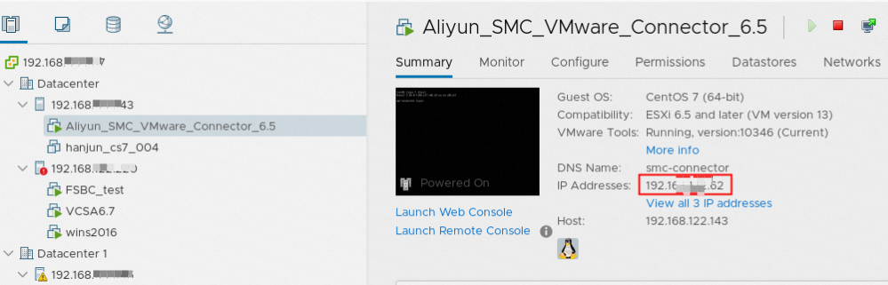 - 在Summary页签下,获取VMware无代理连接器的IP地址。