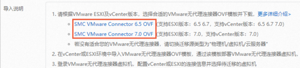 - 用户需要自行配置网络环境,确保创建的VMware无代理连接器能够与vCenter的443端口(默认)、待迁移虚拟机对应ESXi宿主机的902端口(默认)连通。