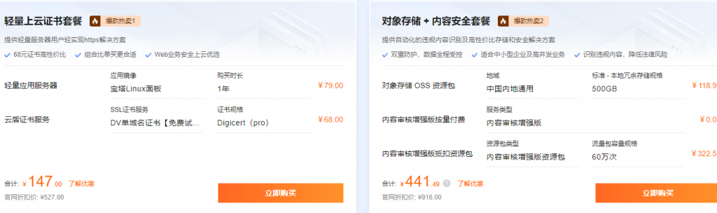 - 存储与网络:OSS标准-同城冗余存储20GB包3个月,支持高可用存储;NAS资源包提供2GB下行流量+20万次请求,适配企业文档备份场景。