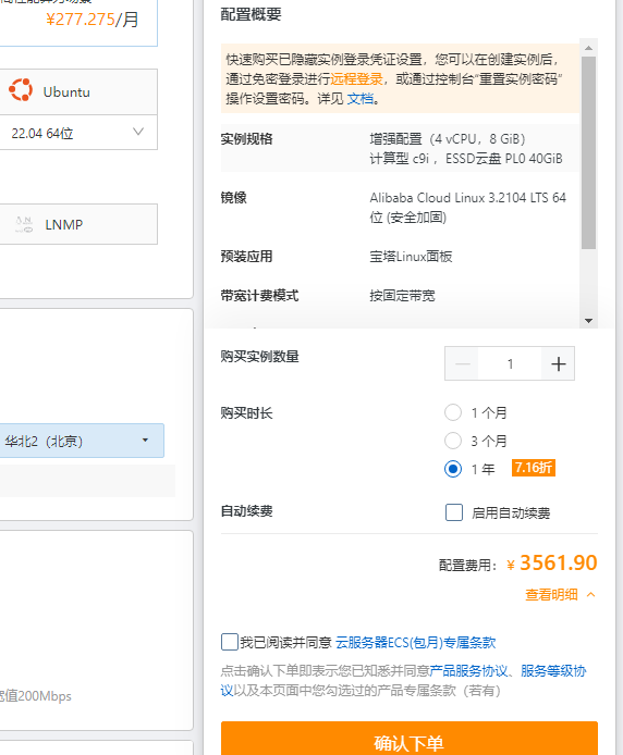 确认配置无误后,点击“立即购买”按钮进入订单确认页面。在订单确认页面上,用户可以再次核对所选配置和优惠信息,确保无误后点击“确认订单”按钮进行购买。 - 填写订单信息