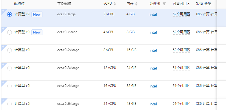 | 计算型 ecs.c9i.12xlarge | 48 | 96 | 9.2955 | 4461.86 | 1249.32 | 6692.76 | 2900.21 | 1918.6 | 1338.56 |