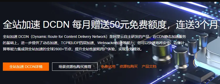 4. 全站加速 DCDN 每月赠送50元免费额度,连送3个月