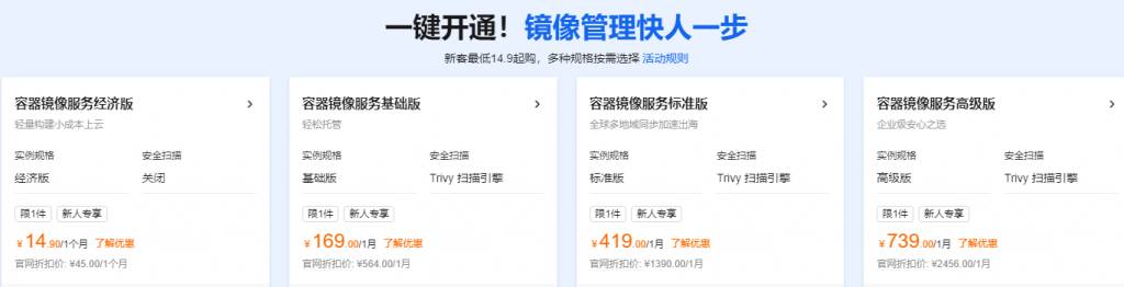 镜像管理是云服务器使用过程中不可或缺的一环。它能够帮助用户快速部署应用环境,提高工作效率。在此次“云服务器特惠”活动中,阿里云推出了一键开通镜像管理的服务。新客最低仅需14.9元起购,多种规格按需选择。这样的服务不仅简化了镜像管理的流程,还让用户能够以更低的成本享受到高效的镜像管理服务。