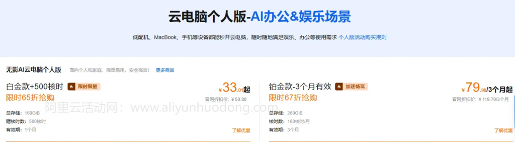阿里云无影云电脑官方产品链接及活动入口:https://www.aliyun.com/product/ecs/gws