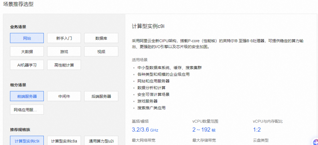 根据业务场景和细分场景的不同,阿里云官方为用户提供了以下实例规格推荐: