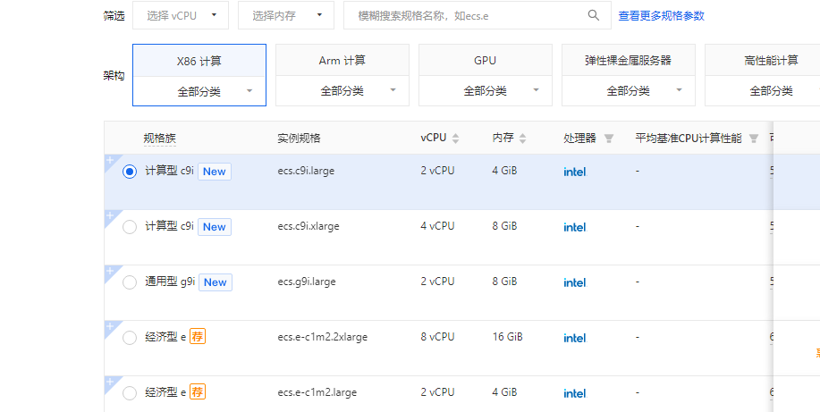 阿里云通过持续的技术迭代,构建了覆盖轻量级应用、通用计算、高性能计算等全场景的实例规格体系。在阿里云目前的活动中,2核16G、4核32G和8核64G可选的实例规格主要有通用算力型u2i和通用型g9a实例可选,这些实例规格的主要性能特点及适用场景如下: