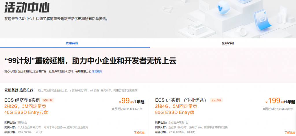 为方便用户快速定位并购买心仪的云服务器产品,阿里云精心整理了以下购买活动直达链接:
