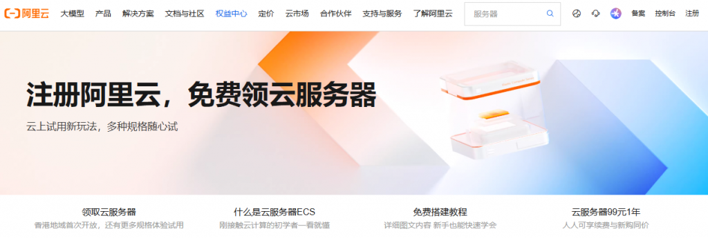 注册平台一:注册阿里云,免费领云服务器