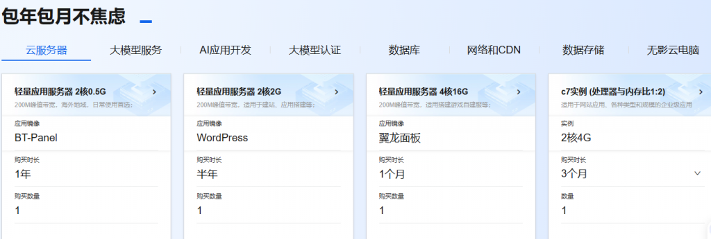 上文为大家介绍了阿里云免费云服务器的申请教程,涵盖学生专享300元无门槛券、个人/企业版免费试用及轻量应用服务器多配置选择。学生用户通过云工开物计划完成认证后,可享300元券抵扣云服务器、数据库等核心产品;个人版与企业版试用分别提供300元/660元免费额度,支持多规格、多地域灵活配置;轻量应用服务器更推出2核4G/1G等多版本,预装宝塔面板、WordPress等镜像,满足快速部署需求。阿里云通过差异化免费方案,精准覆盖学生、开发者、企业等全场景需求,助力用户低成本验证业务。当然,如果不想试用或者觉得试用配置不能满足自己的业务需求,您也可以直接购买,目前选购阿里云服务器通用算力型u2a实例指定配置可享受2.5折优惠,选购AMD旗舰9代计算型c9a、通用型g9a、内存型r9a实例1个月/3个月/6个月8折,包年低至7折,此外经济型e实例2核2G到4核16G也有优惠。