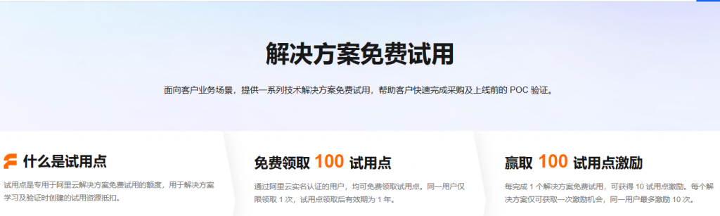 1.免费试用产品:超过160款云产品提供免费试用,助力开发者和企业快速上云。