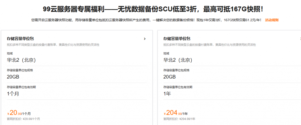 七、99云服务器专属福利——无忧数据备份SCU低至3折,最高可抵167G快照!