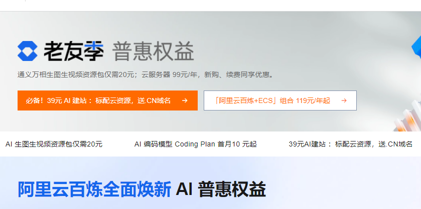 除了以上百炼产品优惠券之外,2026年,针对需要购买云服务器和其他云产品的用户,阿里云还推出了240元券包活动,订单满50元减10元、满360元减80元、满600元减150元,先领券再购买,可在活动价格基础上额外再获得一定金额的减免。详情可参考:https://www.aliyun.com/benefit/client/indexa