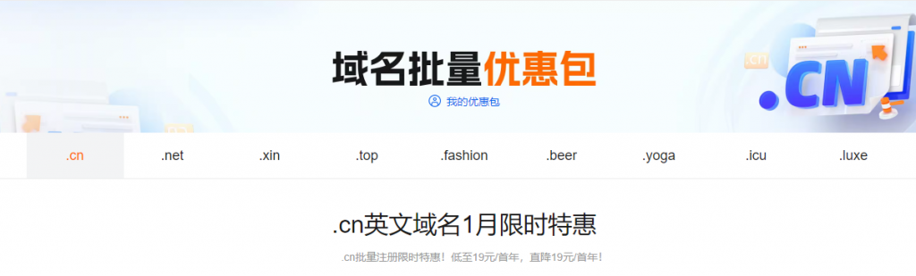 .cn批量注册,低至19元。涵盖多种英文域名的批量注册特惠。