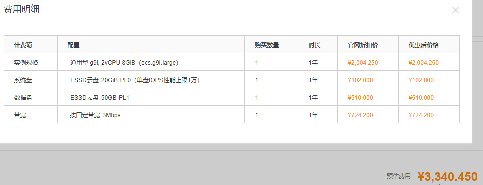 | 通用型g9i(ecs.g9i.2xlarge) | 8核32G | 1M-5M | 20G ESSD云盘 | 891.97元/1个月 2675.91元/3个月 5351.81元/6个月 |