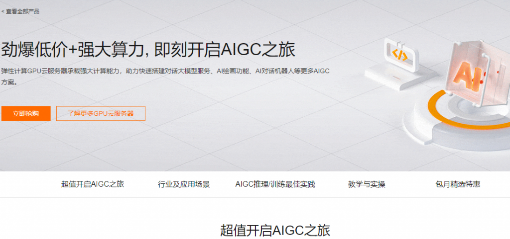 - AI推理/训练:16核60G+1张A10 24G显存(gn7i-c16g1.4xlarge),最长100小时,1.9/小时起