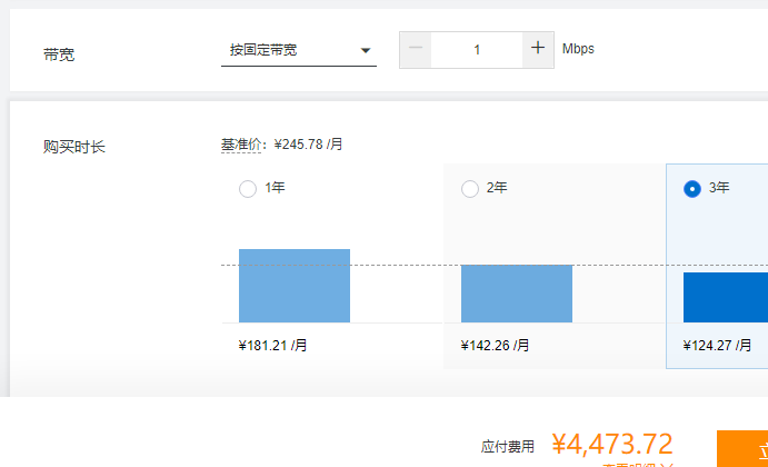 此价格为1M带宽时的价格,实际购买中,可能需要更高的带宽,下面表格为大家整理了经济型e实例4核16G配置1M-5M带宽,分别选择1年、2年和3年时的活动价格,以供对比参考: