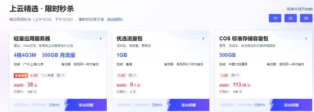 多款热卖商品特惠,助力AI场景落地、数字化转型。包括云服务器、存储、网络与CDN、数据库、安全、视频通信、AI人工智能、大数据与开发运维、企业服务与协同办公等多个领域。具体产品及价格请关注活动页面,如: