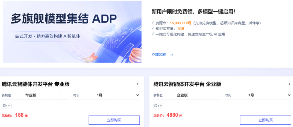 精选场景,赋能开发,助力开发者无忧上云!从代码生成到部署运维全程AI化,支持Cursor、Windsurf、codebuddy深度集成,开发效率显著提升。企业级AI Agent开发低门槛,分钟级集成AI能力,搭建AI智能体。免费体验报名微信小程序成长计划,免费赠送6个月云资源,领取1亿免费token。