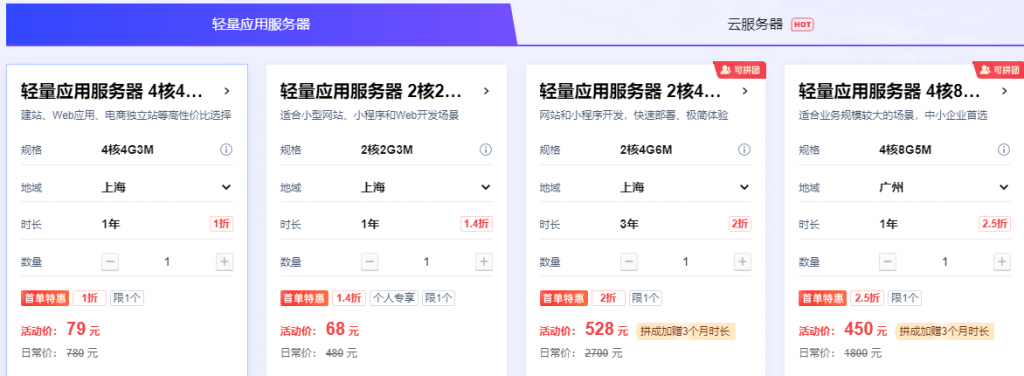 - 轻量应用服务器:4核大算力,新用户低至79元/年。