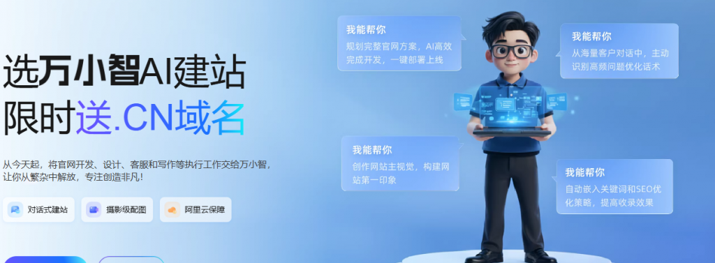 10分钟,高效搭建品牌官网。即日起至2026年03月31日,购买/续费万小智AI建站或云·企业官网,每单赠送1个.CN域名首年免费权益,在建站控制台领取。活动详情可参考:https://wanwang.aliyun.com/website/xiaozhi