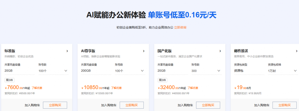 三、阿里云企业邮箱最新收费标准及活动价格参考