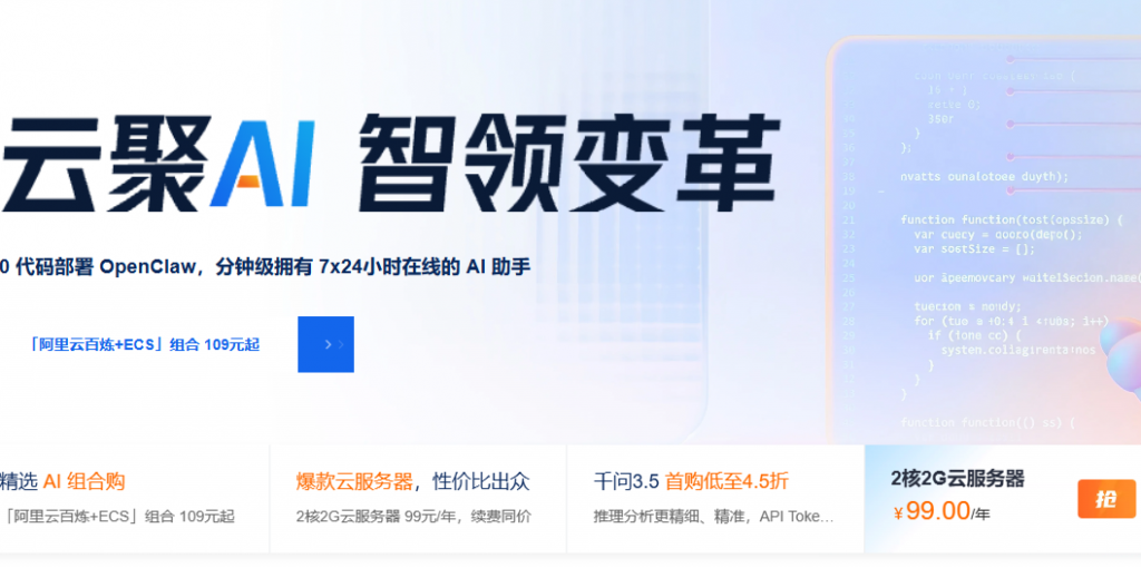 阿里云的云聚AI活动:https://www.aliyun.com/benefit/client/indexb/ecs 0代码部署 OpenClaw,分钟级拥有 7x24小时在线的 AI 助手。