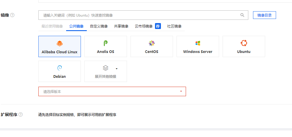 - 基础服务(如Web服务器):选择公共镜像或云市场基础镜像。