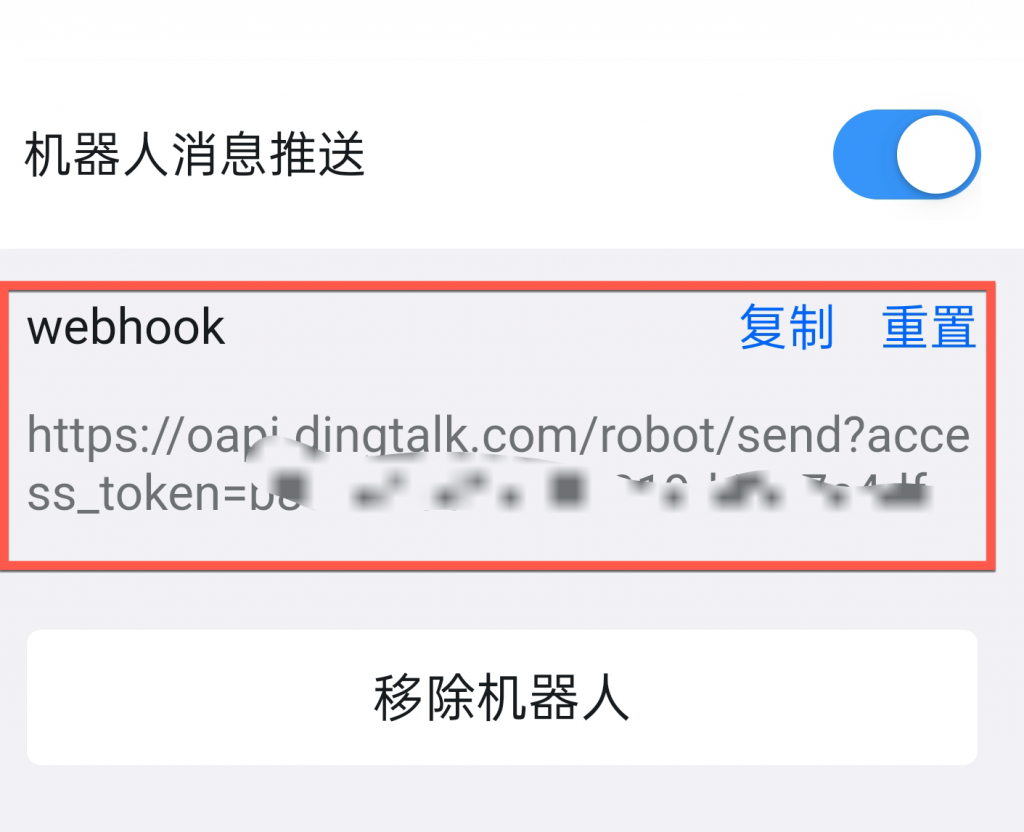 1.获取机器人的Webhook地址:在已添加机器人的群聊中单击右上角群设置 > 群管理 > 机器人,单击机器人管理中的机器人头像,复制机器人的Webhook地址并粘贴。