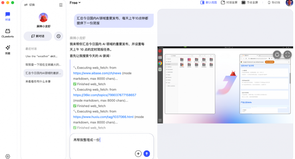 支持手机、电脑、网页三端互通,用户可通过任意设备发起任务或监控AI执行过程。 - 安全隔离环境: